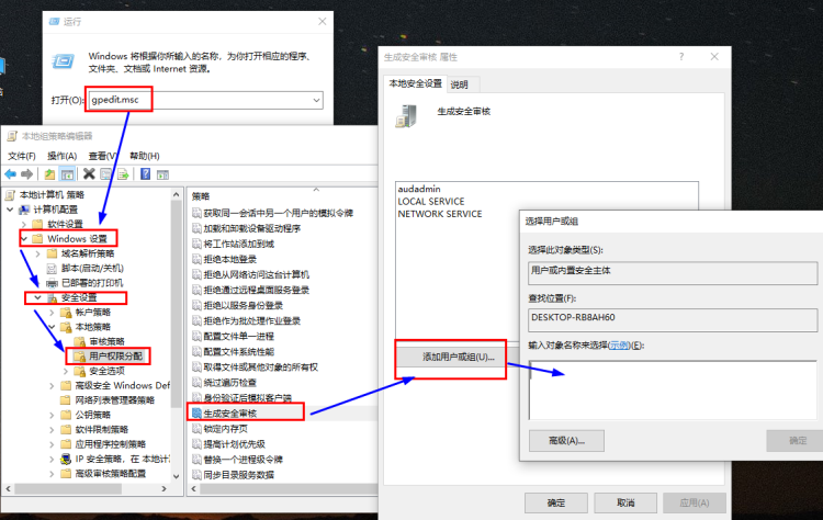 7、本地安全策略——本地策略——审核策略的所有设置全部打开(成功、失败全部勾选上)